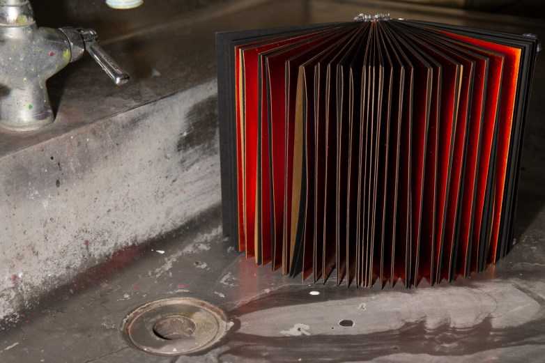 What we’re chewing on: How do you document books that have hundreds of text and illustration spreads in multiple physical forms- in ten images? How do you reduce those same images to three social media promotional photos? And how do you do this when a key element of the art experience is the handling and installation, but the images are due two weeks before installation?