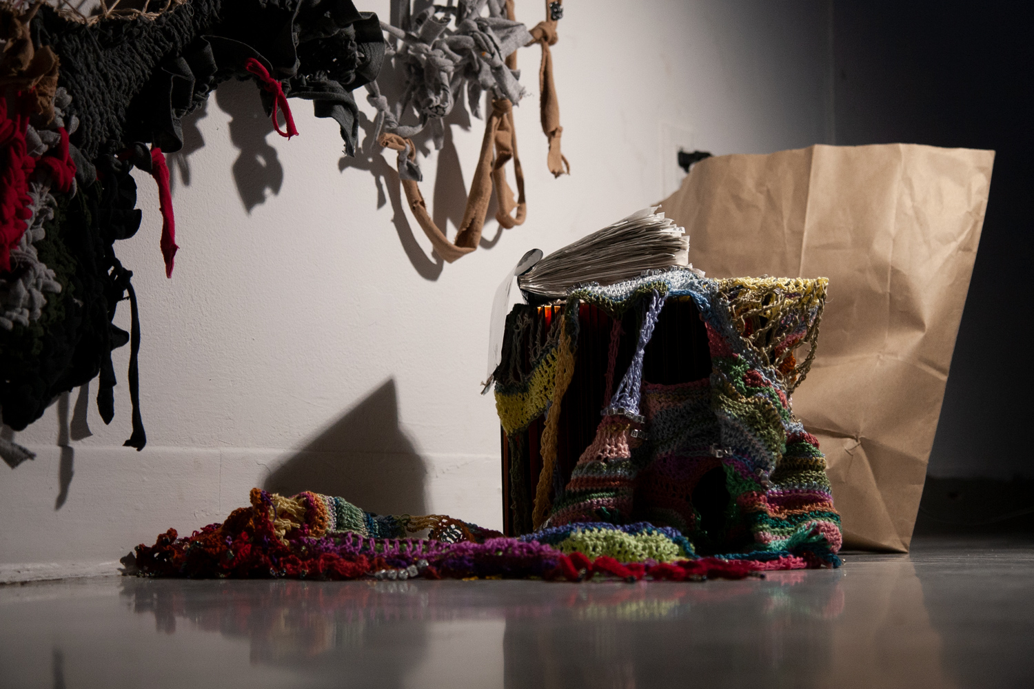 What we’re chewing on: How do you document books that have hundreds of text and illustration spreads in multiple physical forms- in ten images? How do you reduce those same images to three social media promotional photos? And how do you do this when a key element of the art experience is the handling and installation, but the images are due two weeks before installation?